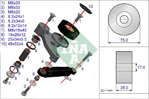 ремонтный комплект, рычаг натяжки поликлинового ремня INA 533 0118 10